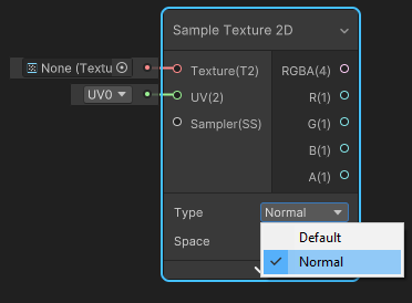 5. Attach the RGBA(4) **Output Slot** of the **Default Type** Nodes as shown below. Note that you should attach the **Normal Type** Node's Output Slot to the **Normal(Tangent Space)(3)** Input Slot.