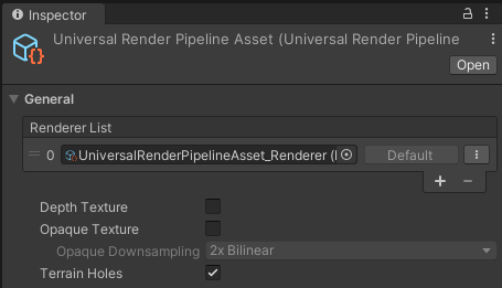 Note: If you use the 2D Renderer in your Project, some of the options related to 3D rendering in the Universal Render Pipeline Asset will not affect or impact on your final app or game.